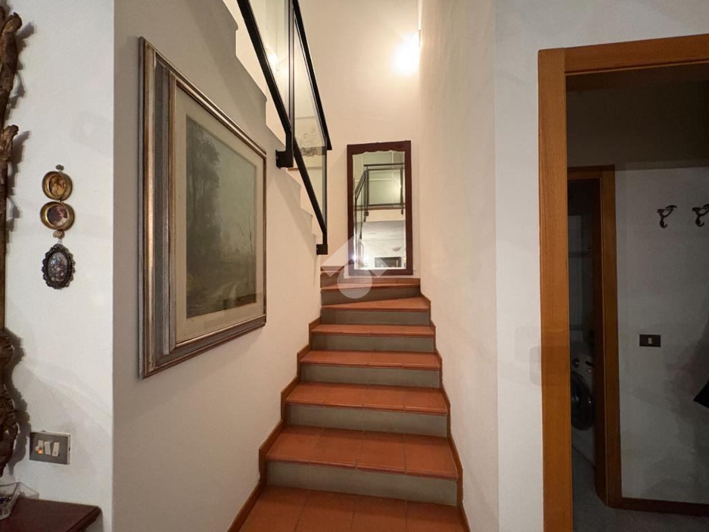 Salendo al piano superiore, si accede alla zona notte, composta da tre confortevoli camere da letto: la camera matrimoniale, spaziosa e luminosa, che dispone di un accesso diretto a un primo terrazzo privato; un'altra camera attualmente adibita a studio; e una terza camera più piccola. A completare il piano superiore un bagno dotato di box doccia. Il disimpegno della zona notte conduce a un secondo terrazzo, offrendo uno spazio esterno aggiuntivo e panoramico.