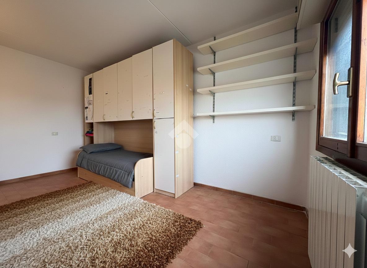 Proseguendo verso la zona notte si trovano due camere: una matrimoniale con finestra e una singola , un bagno finestrato con box doccia.