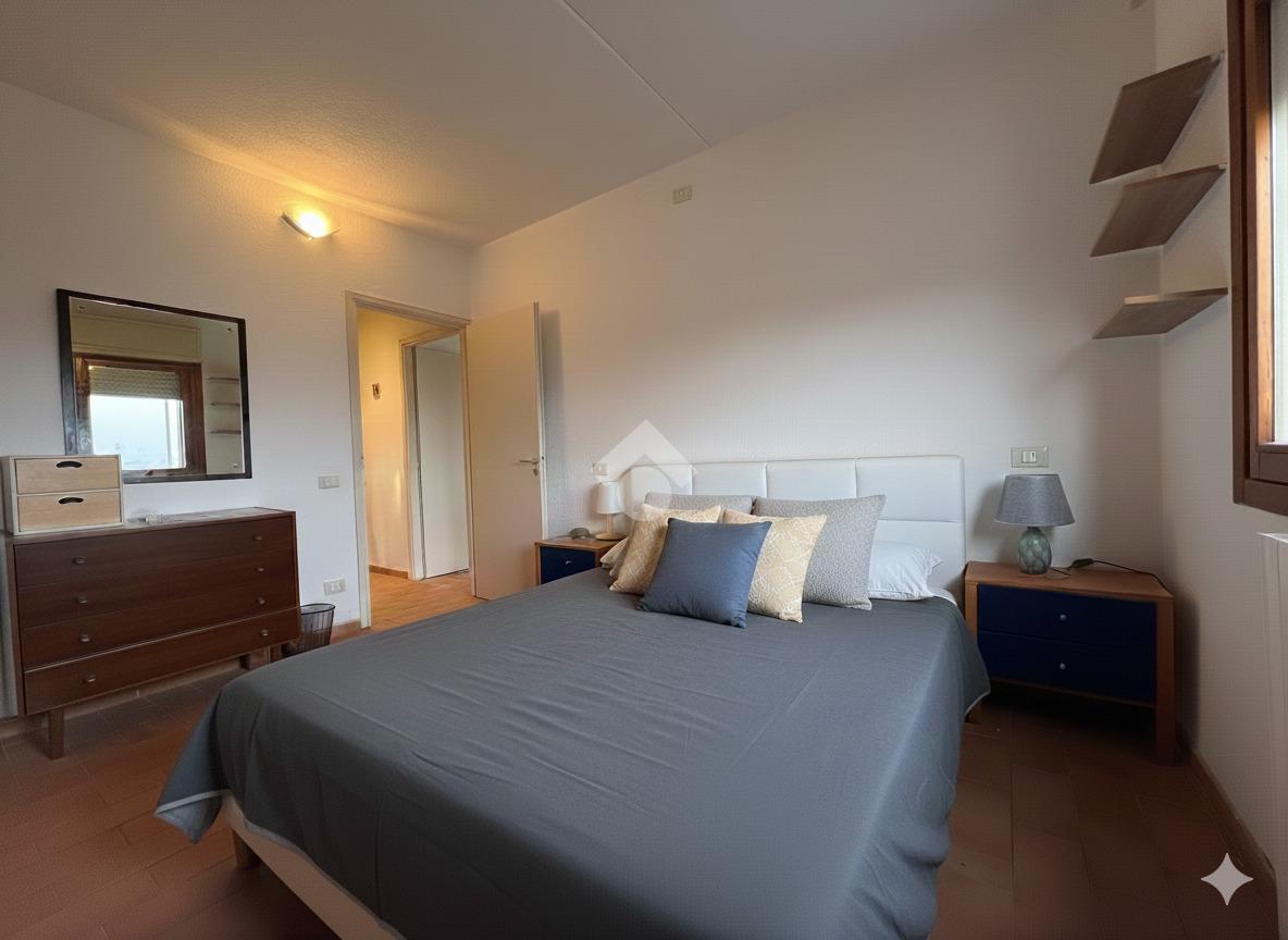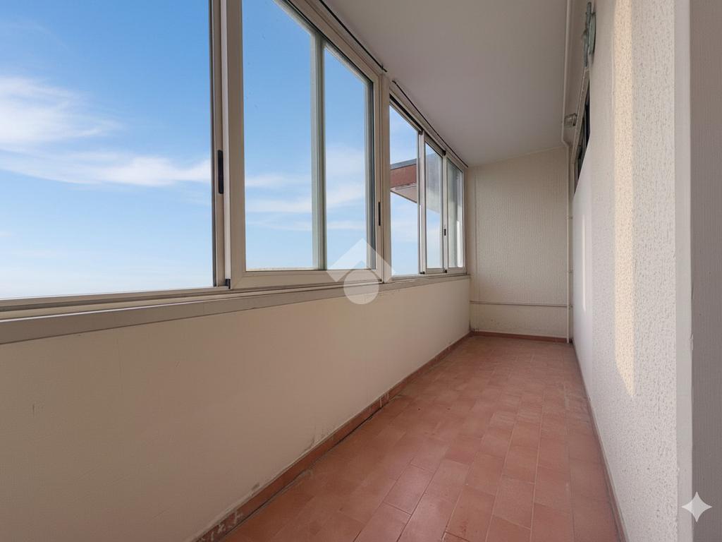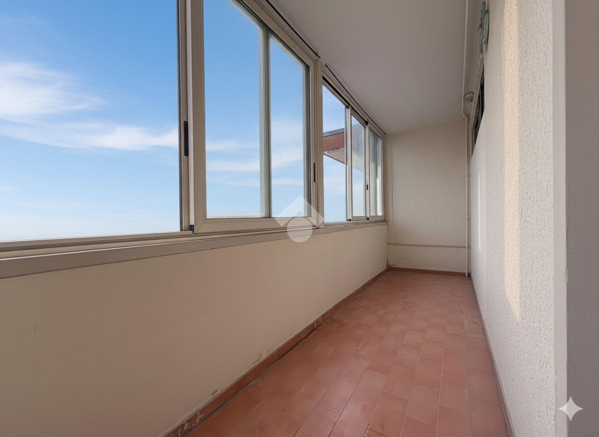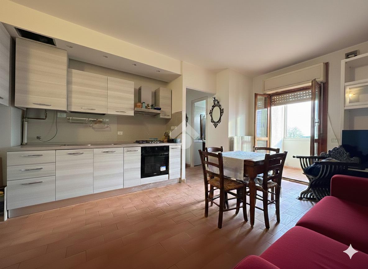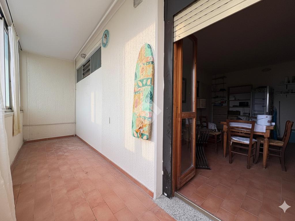 Si accede direttamente dalla porta d’ingresso alla zona giorno open space, composta da soggiorno con angolo cottura integrato. L’ambiente è luminoso e comunica con un ampio terrazzo verandato, accessibile tramite porta-finestra, ideale per pranzi all’aperto, relax o come spazio extra vivibile tutto l’anno.