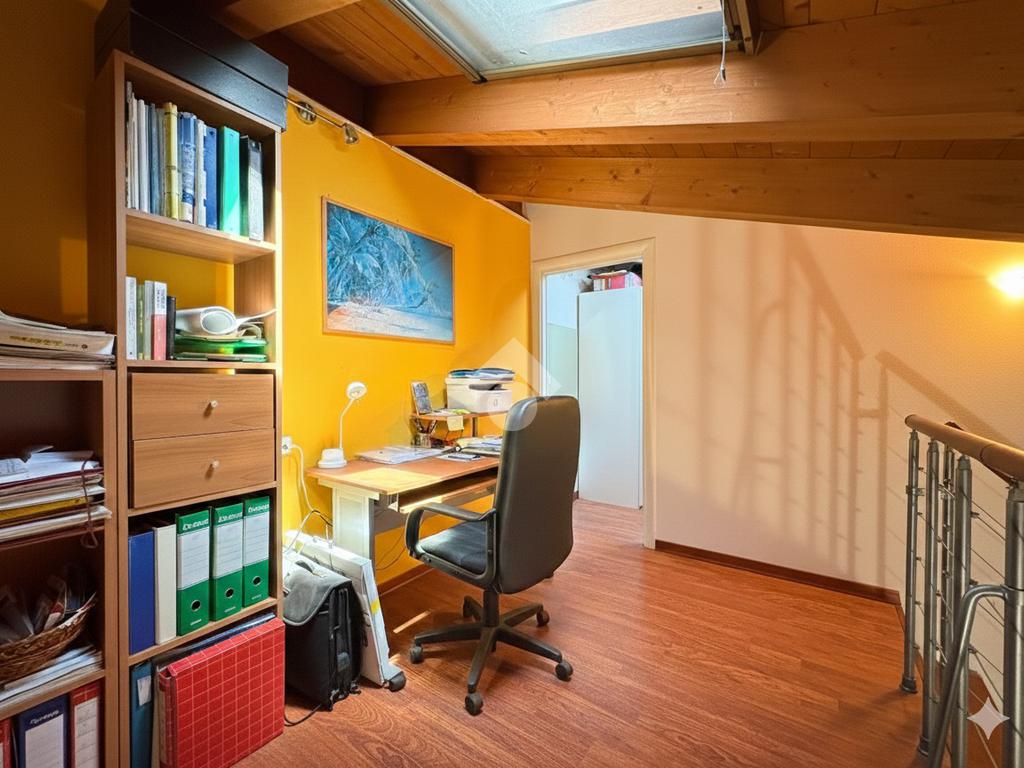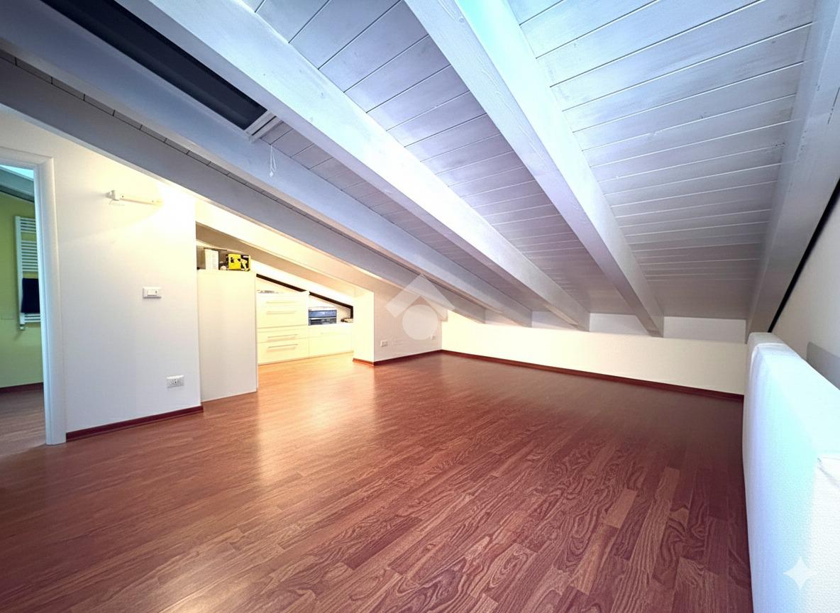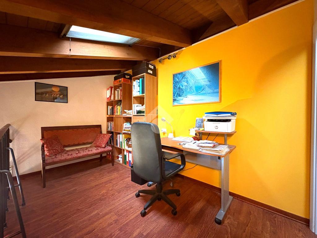 Il Soppalco e Sottotetto: Vero valore aggiunto della casa è il soppalco a vista sul soggiorno, attualmente adibito a zona studio. Proseguendo, si accede a una porzione di sottotetto, uno spazio versatile da sfruttare come camera degli ospiti o comodo ripostiglio. Il piano è completato da un secondo bagno finestrato.