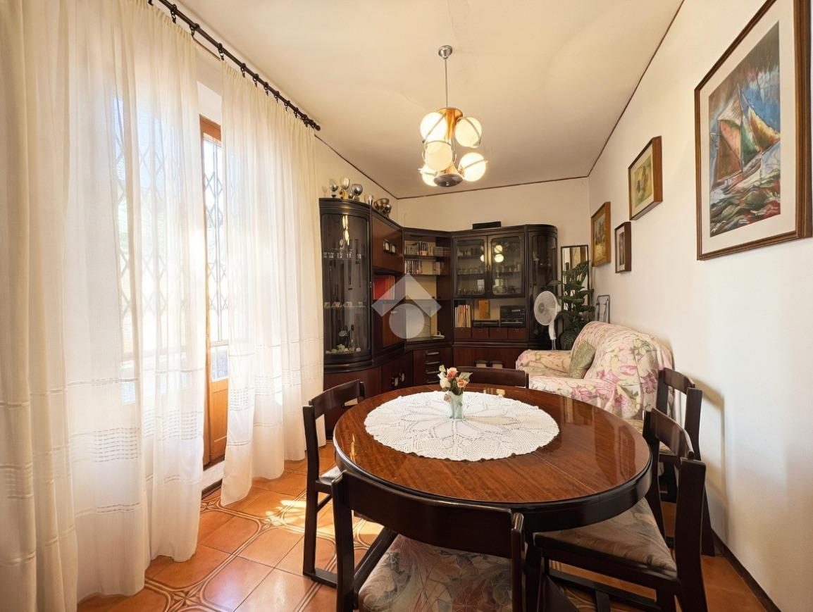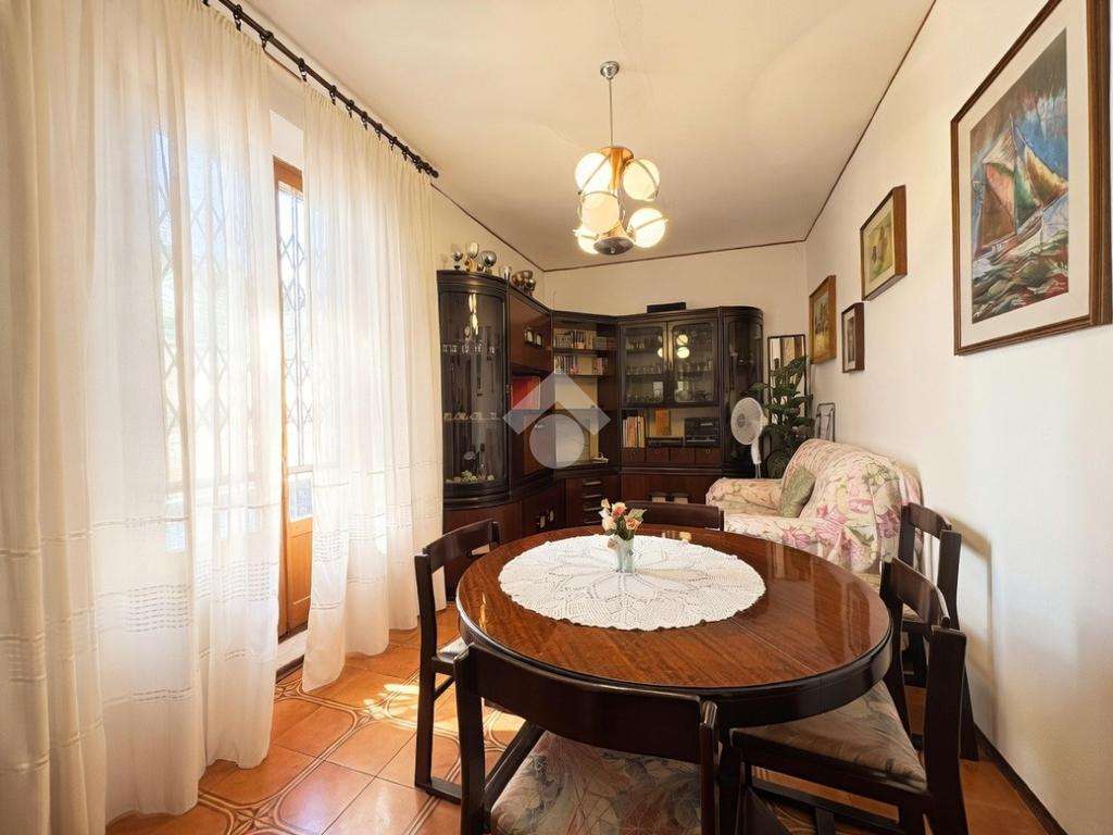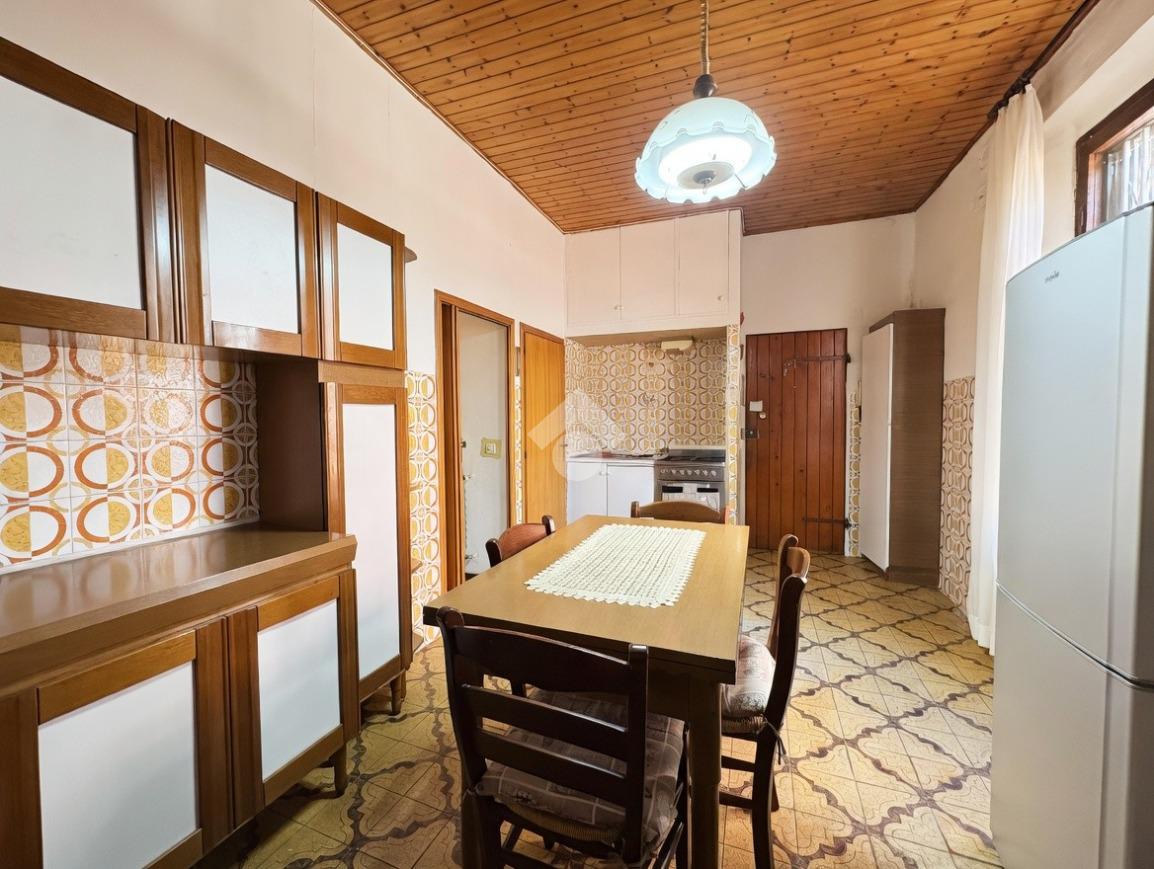 L'ingresso si apre direttamente su una zona giorno accogliente, caratterizzata da una sala da pranzo che integra un funzionale angolo cottura, cuore pulsante della casa da cui si snodano i vari ambienti.