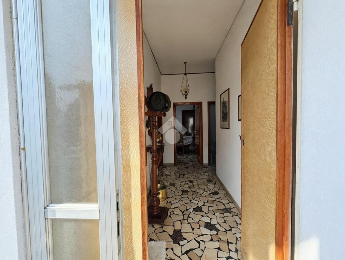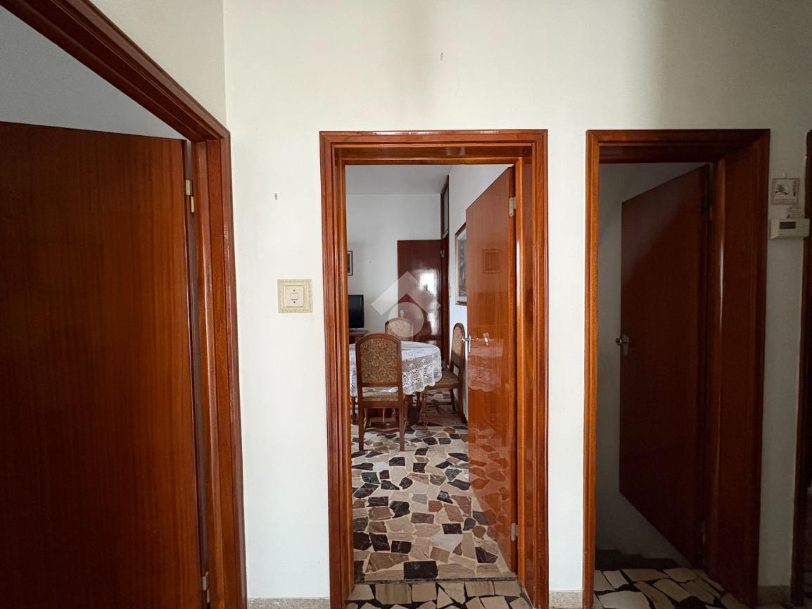 L’appartamento principale, situato al piano primo, è raggiungibile in due modi distinti: tramite una scala interna comodissima che parte dai servizi al piano terra dove abbiamo anche un garage di proprietà, un primo vano vivibile, un bagno e un secondo vano attualmente usato come cucina, oppure attraverso una scala esterna indipendente che porta direttamente all’ingresso principale dell’abitazione.